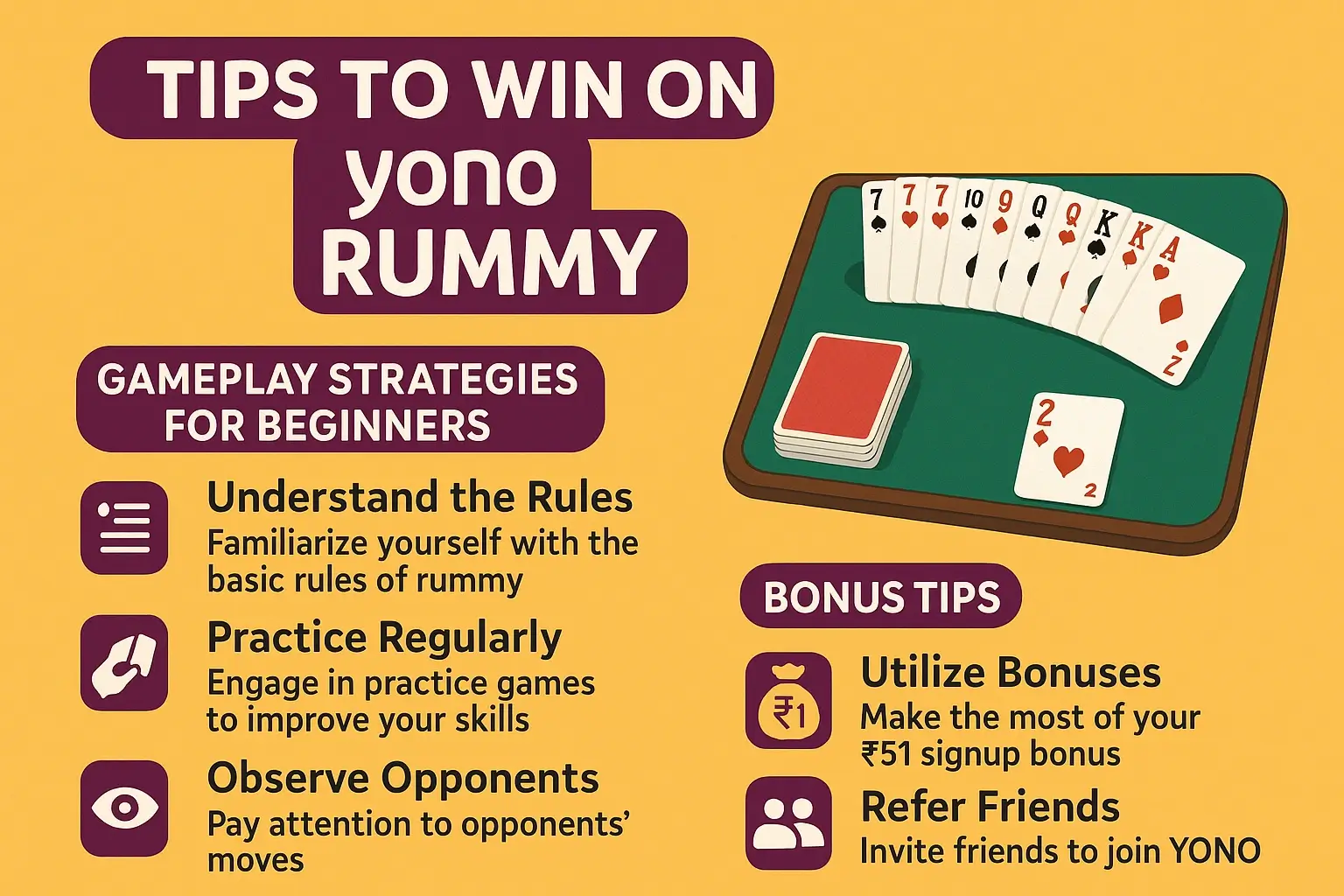 Enhance your chances of winning on YONO Rummy with these strategies: